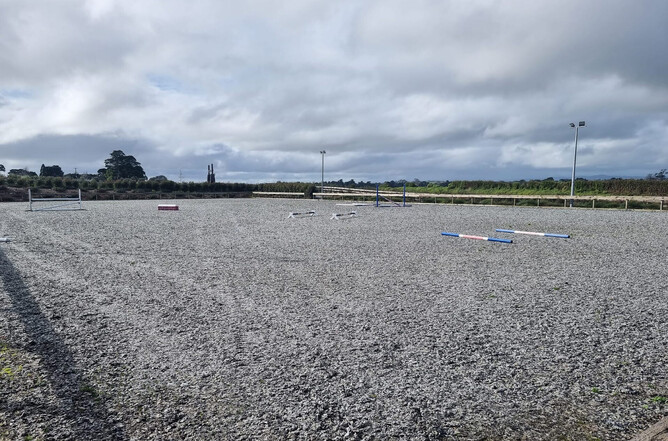 Our Ebb and Flow arena with GGT Fibre not showing a puddle and perfect to ride on last week even though our pond overflowed and track washed out after days of torrential rain.