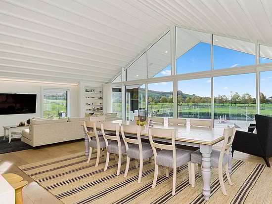 Timber floors, high ceilings, white-washed walls and full-height glass create a sunny, luxurious atmosphere – without losing sight of the country outlook, of course.