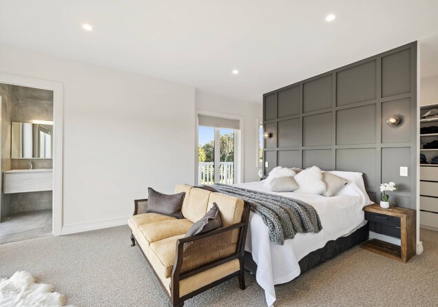 A modern take on a traditional farmhouse, this home has the best of both worlds. Romantic detailing throughout is balanced with modern features and function. High stud throughout the home creates a warm and inviting sense of space.