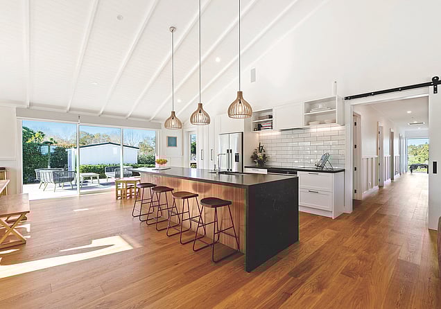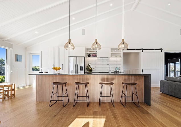 A modern take on a traditional farmhouse, this home has the best of both worlds. Romantic detailing throughout is balanced with modern features and function. High stud throughout the home creates a warm and inviting sense of space.