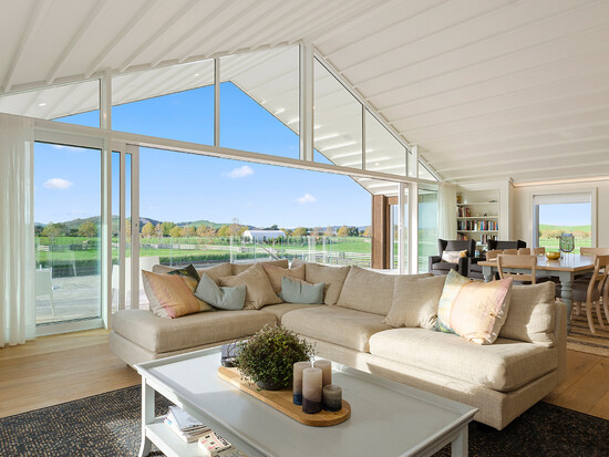 Timber floors, high ceilings, white-washed walls and full-height glass create a sunny, luxurious atmosphere – without losing sight of the country outlook, of course.