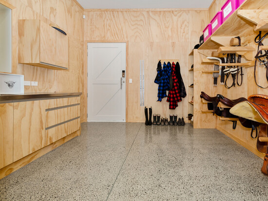 Reflecting on happy memories of his days staying in the shearer’s quarters at Massey University, the owner of this country home hoped to create a similar atmosphere with his new sophisticated apartment-style dwelling.